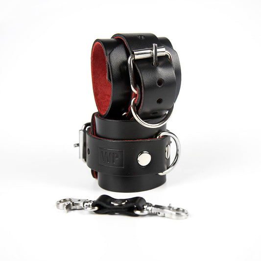 - Широкі наручники з карабінами посиленої міцності для чоловічого бондажу