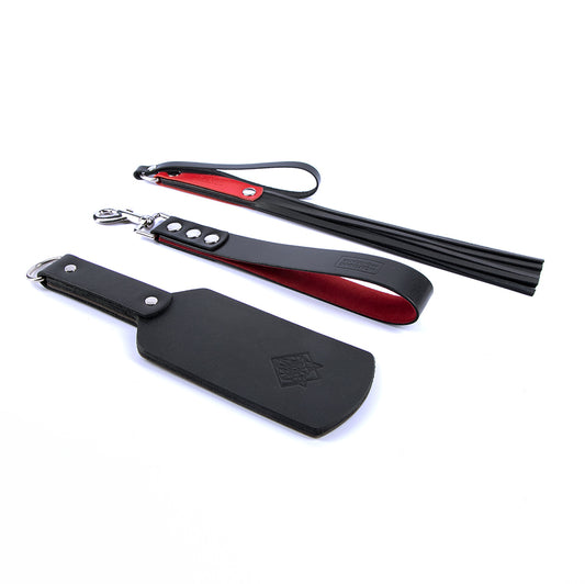 БДСМ набір включає короткий БДСМ падл, генітальний флогер та падл-петлю на карабіні - ідельний міні комплект для подорожей, вечірок або тих, хто лише починає експерементувати зі спанкінгом та флогінгом і хоче спробувати різні девайси.